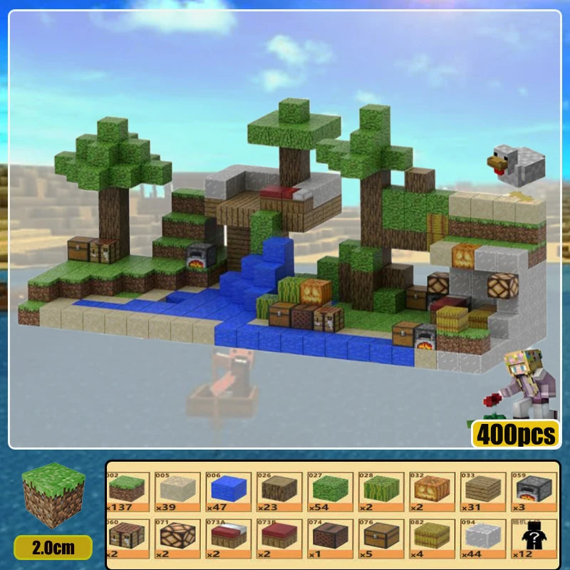 The block design is inspired by the block elements in the game "Minecraft", and children can build various buildings and scenes in the game through the blocks.